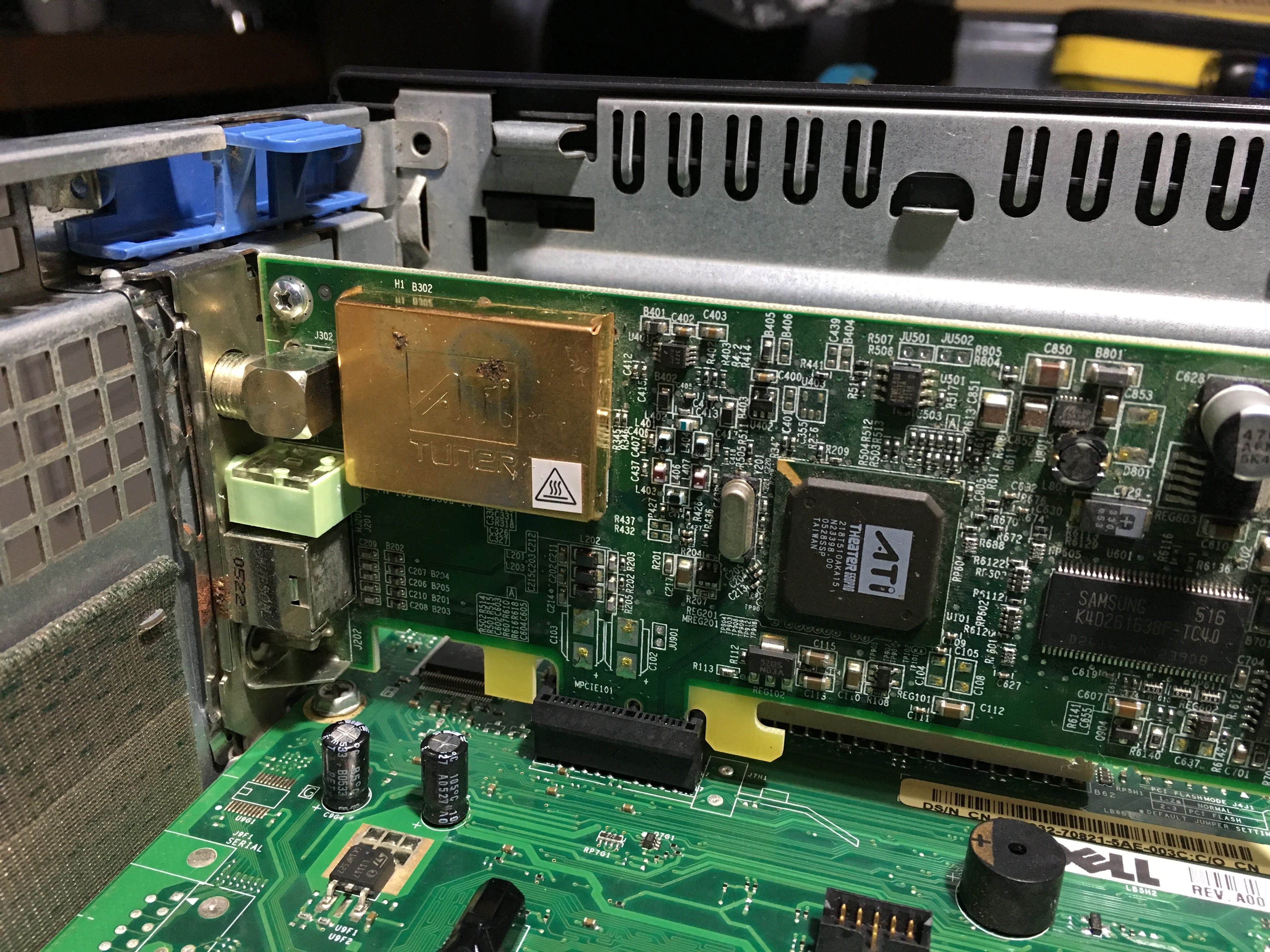 雑巾でケース外側を拭いて、いざ開封し、チューナーカードを外した状況が下の写真です。