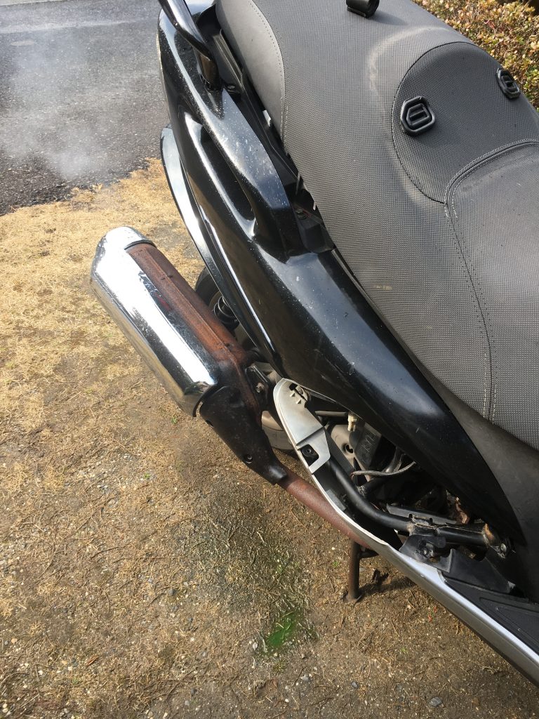 ものすごい白煙がマフラーからでています。マフラーの途中からも。