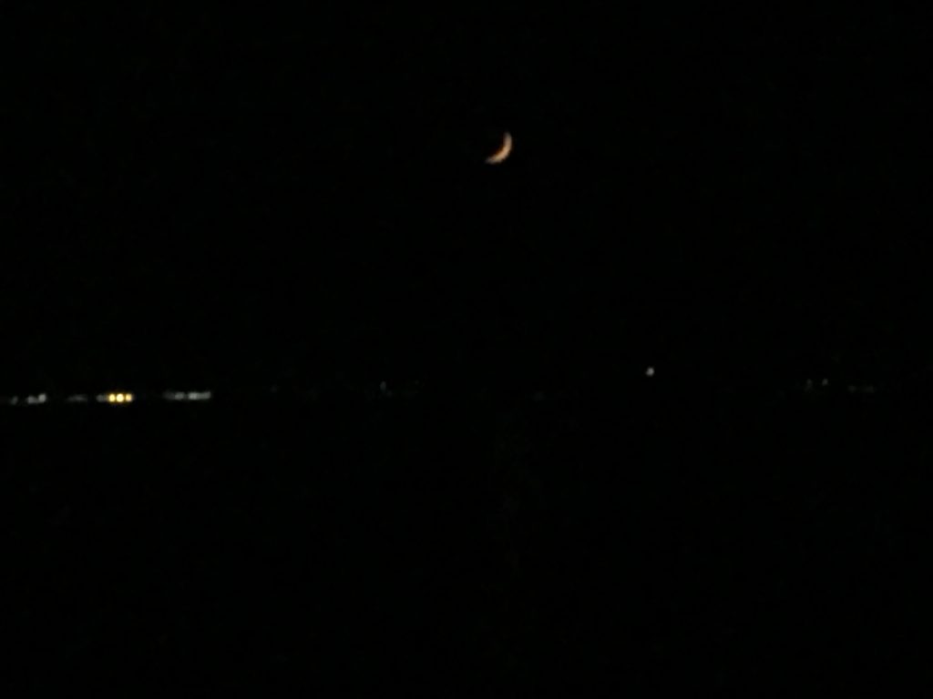 この夜、近江八幡の琵琶湖湖岸から、比良さんの方向の月に、地球照で照らし出された月を確認しましたので、撮影しました。
