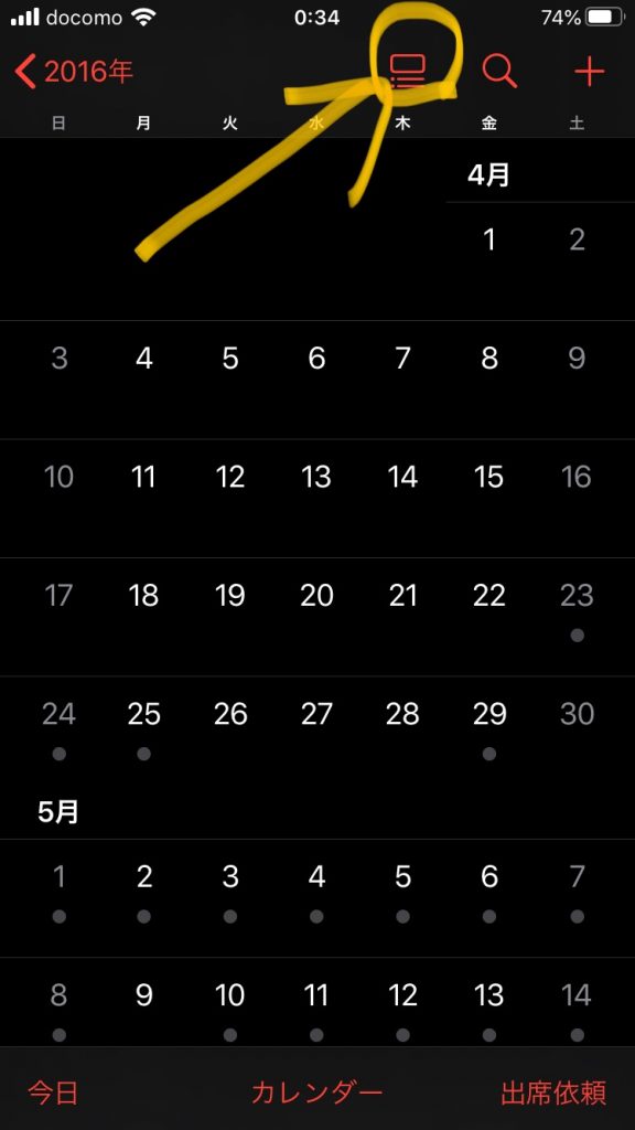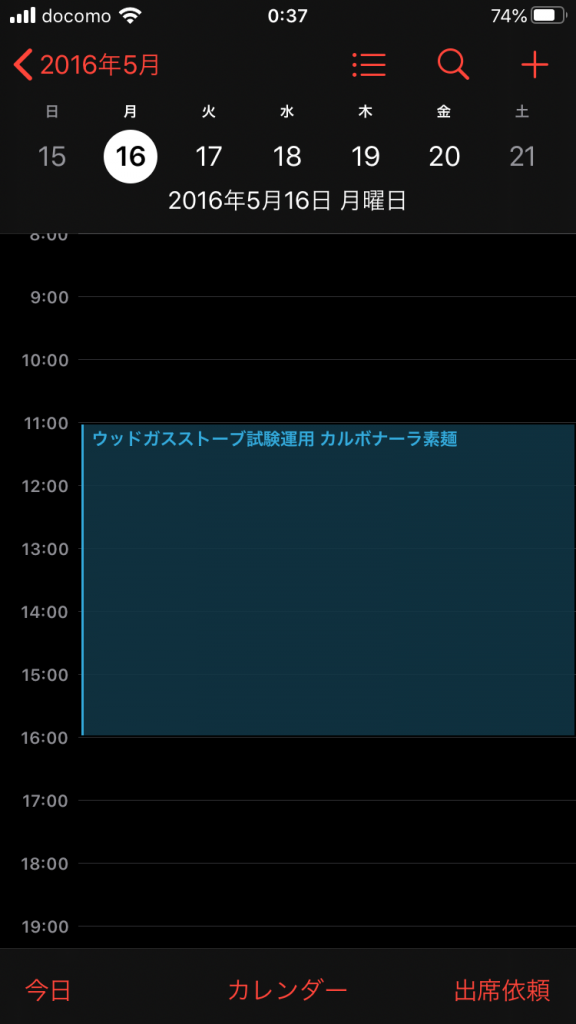 と言った状況で、さっきのアイコンをタップして見ますと、下の写真の様なフォーマットで2016/5/16のスケジュールを見る事ができました。