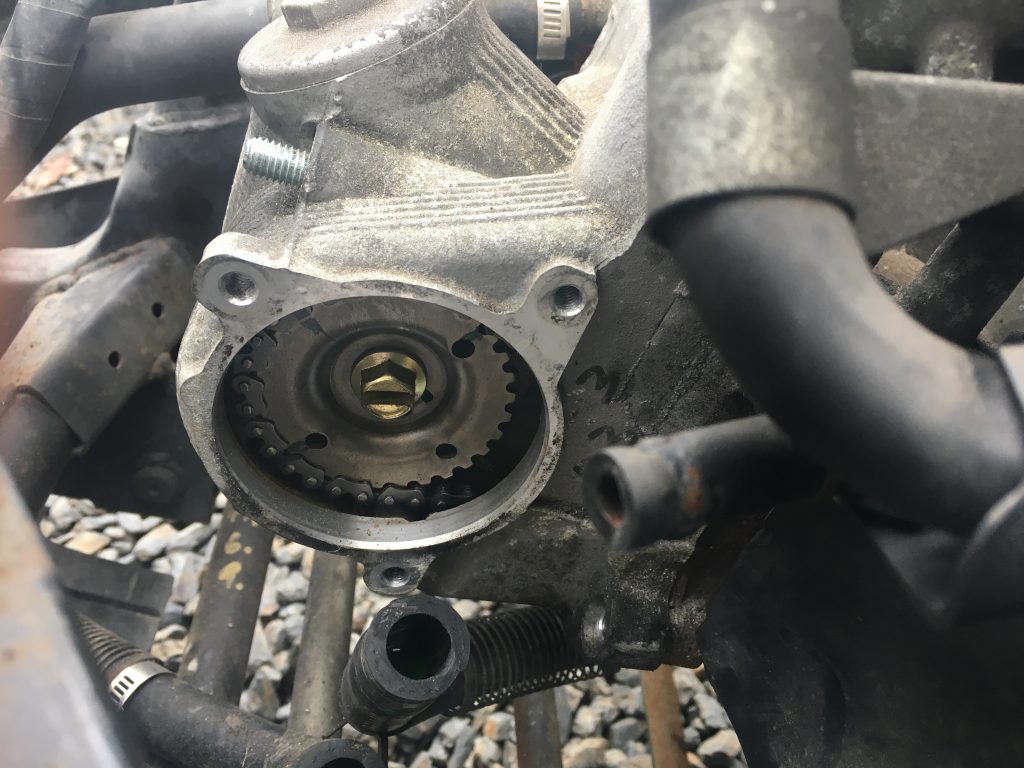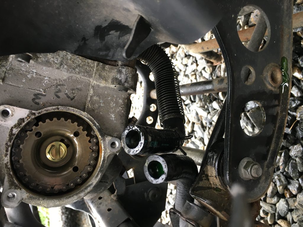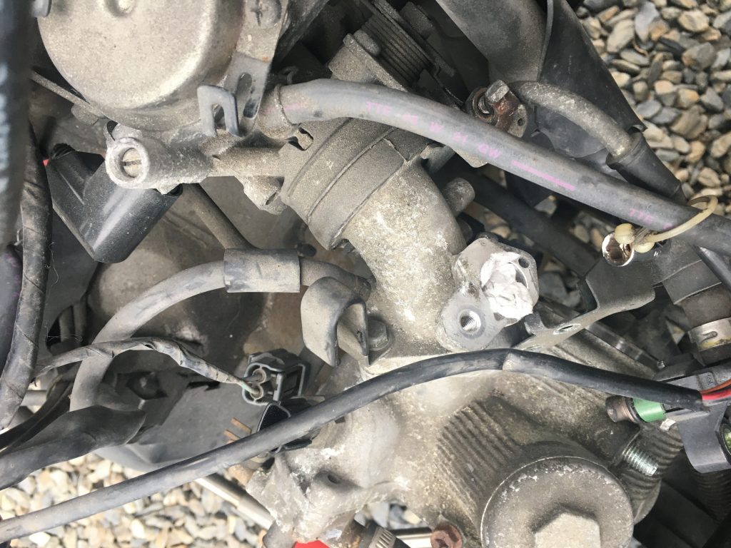 シリンダー前後のガスケット交換に伴い、冷却液のホースをはずし、冷却液ポンプもシリンダーヘッドから外しましたので、組み立てたあと、冷却液を補充しました。この時、冷却液ポンプとその反対側で空気抜きを行いました。