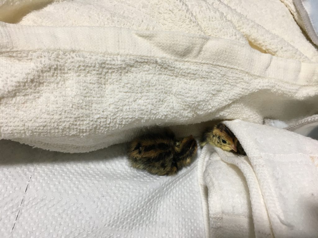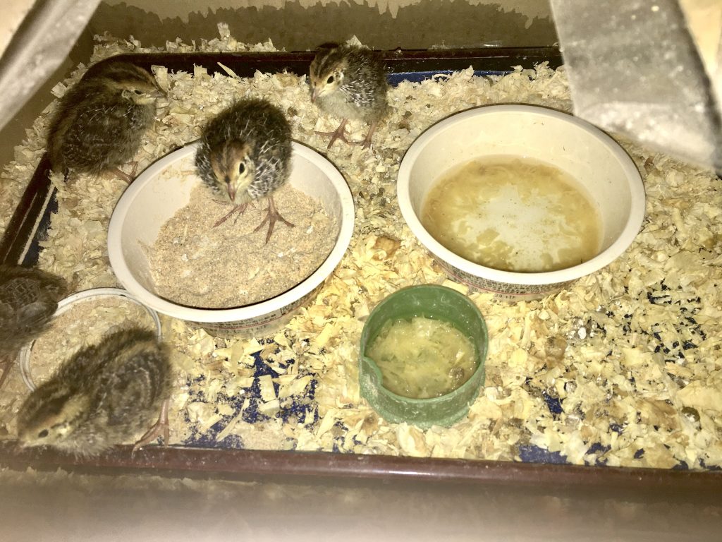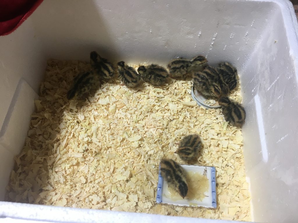 ダンボールで作成した、暫定的な鶉の住処は今の所大きな問題に直面すること無く過ごせています。