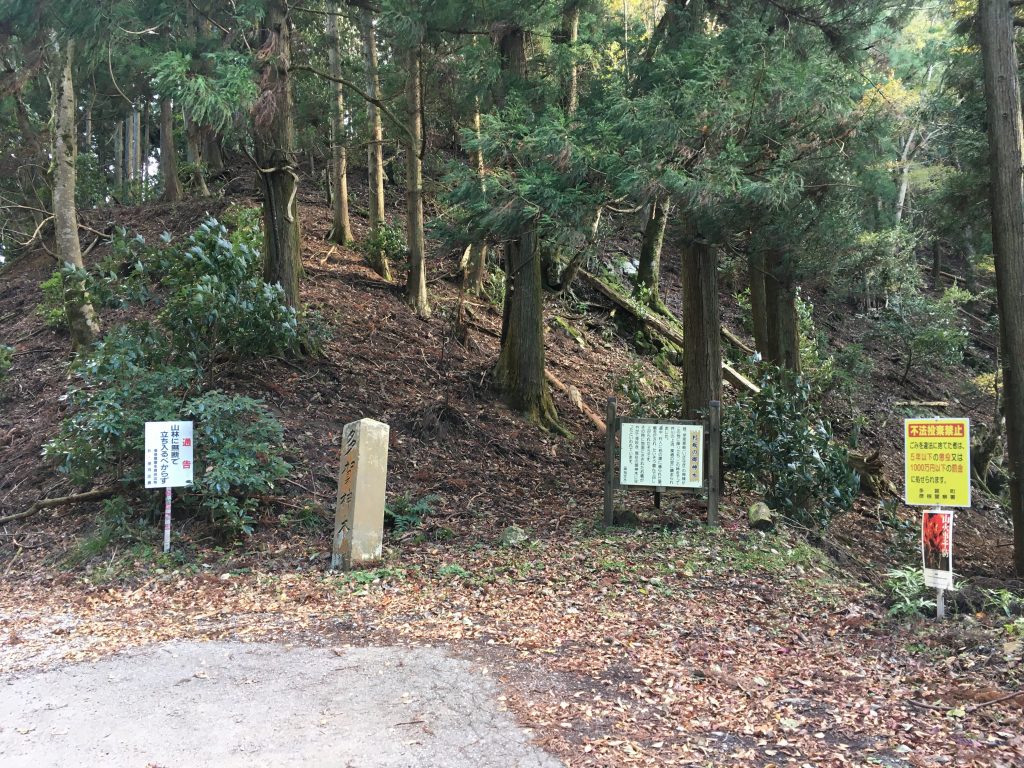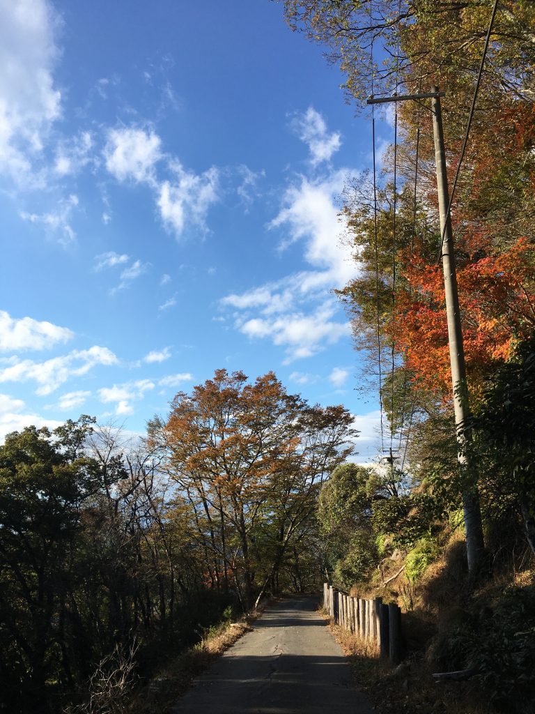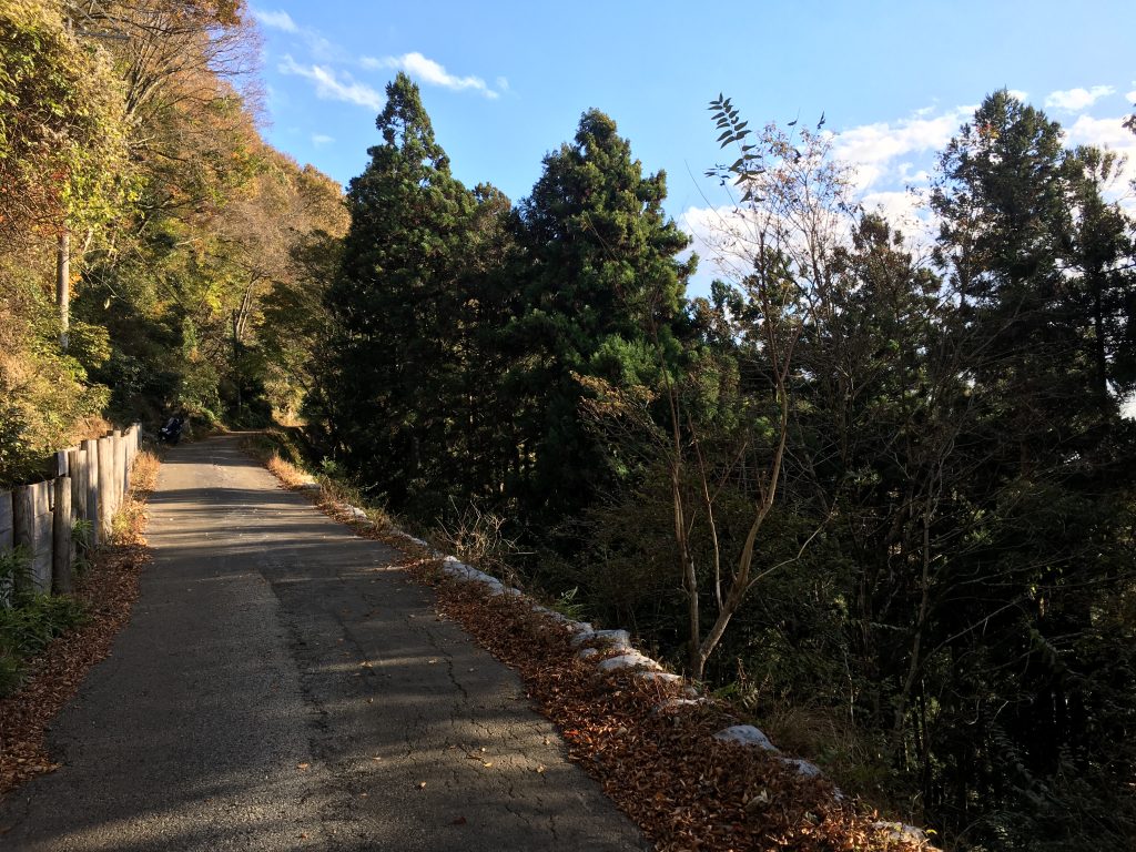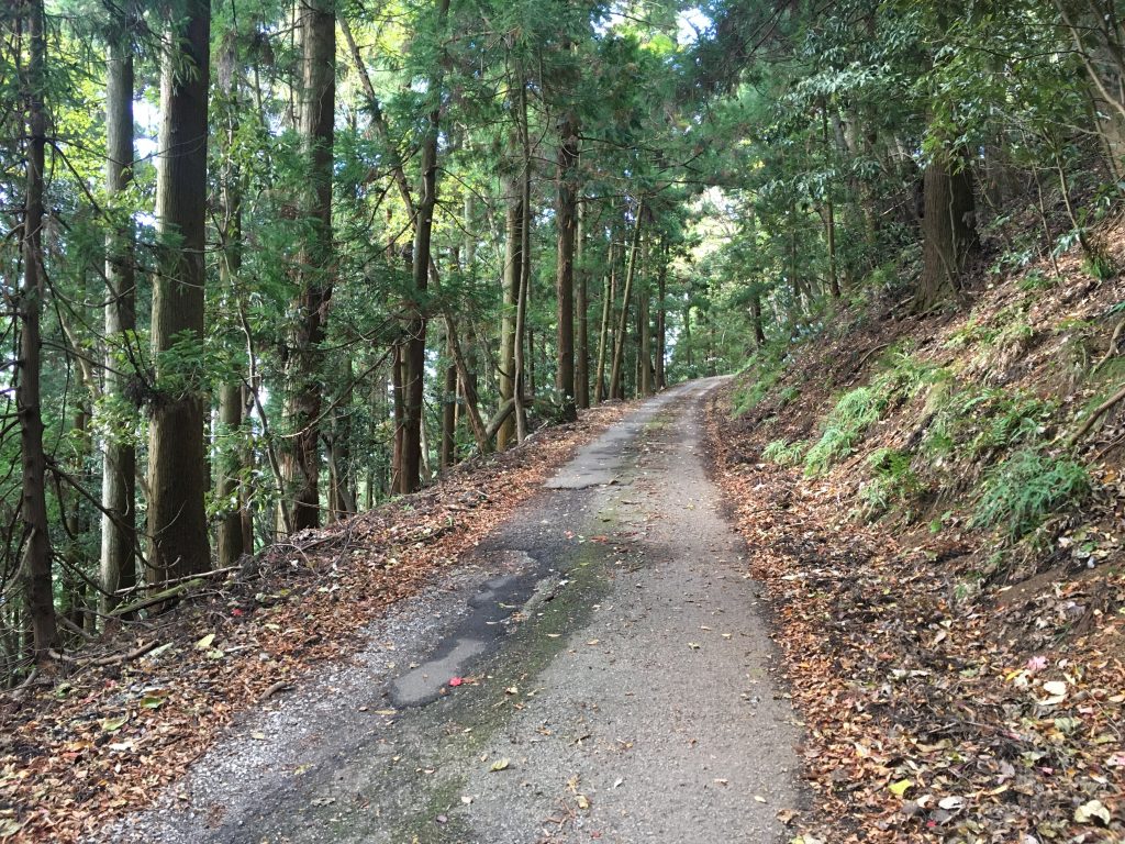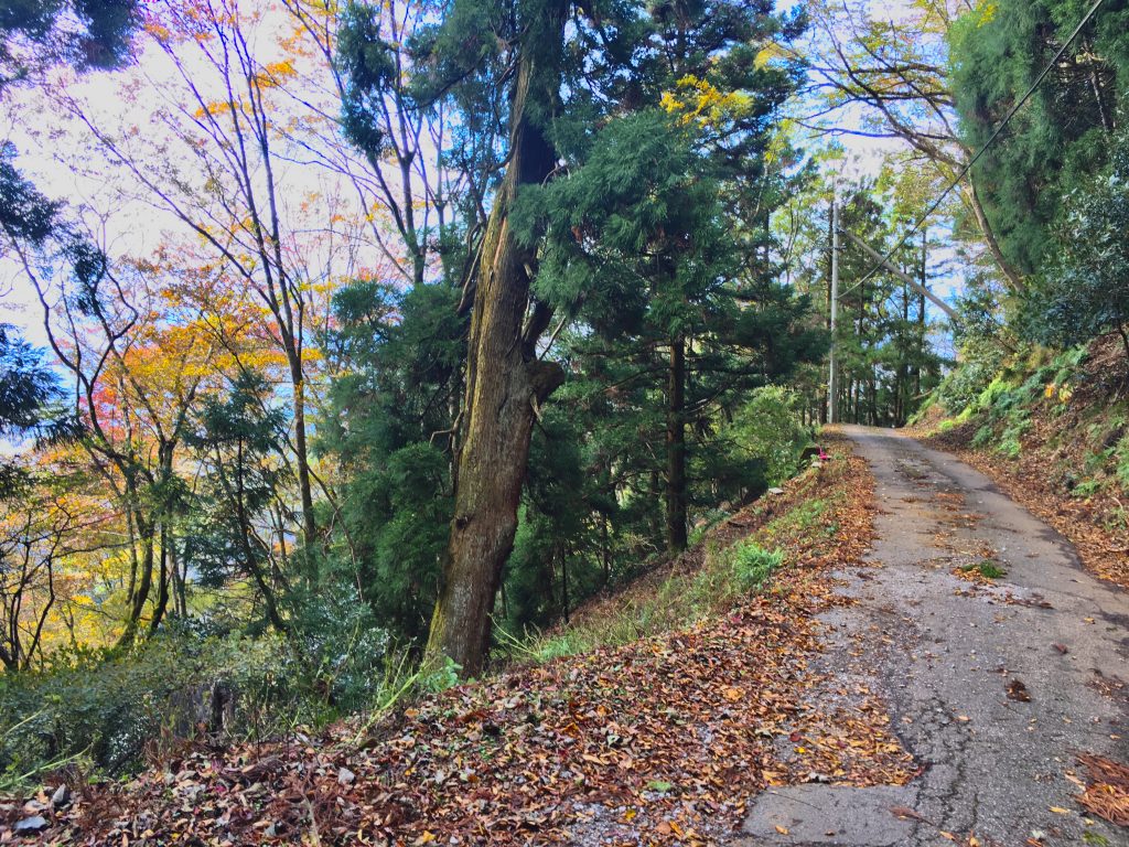 多賀大社付近の集落から山に入りましたら、急に急勾配のつづら折れの細い道になりました。