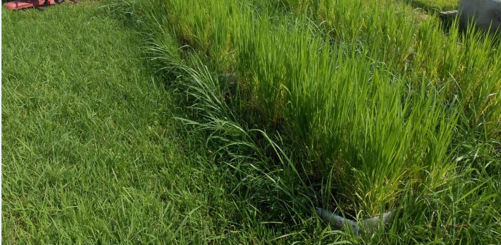 結果としては、栄養が少ない為か?、稲の背が短く、秋に放置されていたものと同じぐらいの藁の長さで、鶉の飼育箱に入れるのにちょうどいい長さでした。