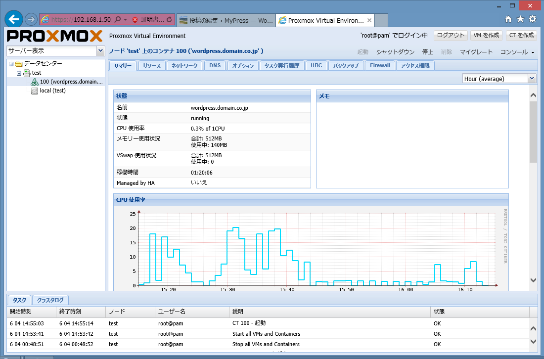 とは言えPROXMOX自体を、まだまだ勉強中です。